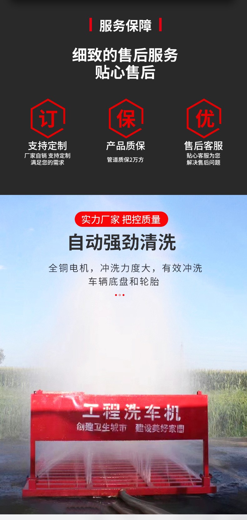 洗轮机又称作洗车台,是依据市政、路政、工地、交通等各部门对施工车辆的要求下,对各类工程车辆的轮胎底盘设计高压多方位冲洗设备。